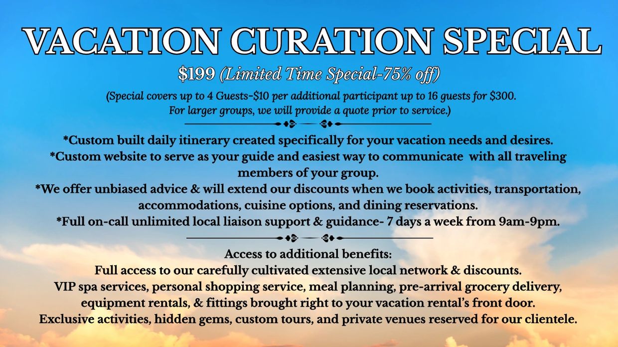 GET A COMPLETE PERSONALIZED ITINERARY FOR YOUR ENTIRE WEEKS VACATION STARTING @ $199